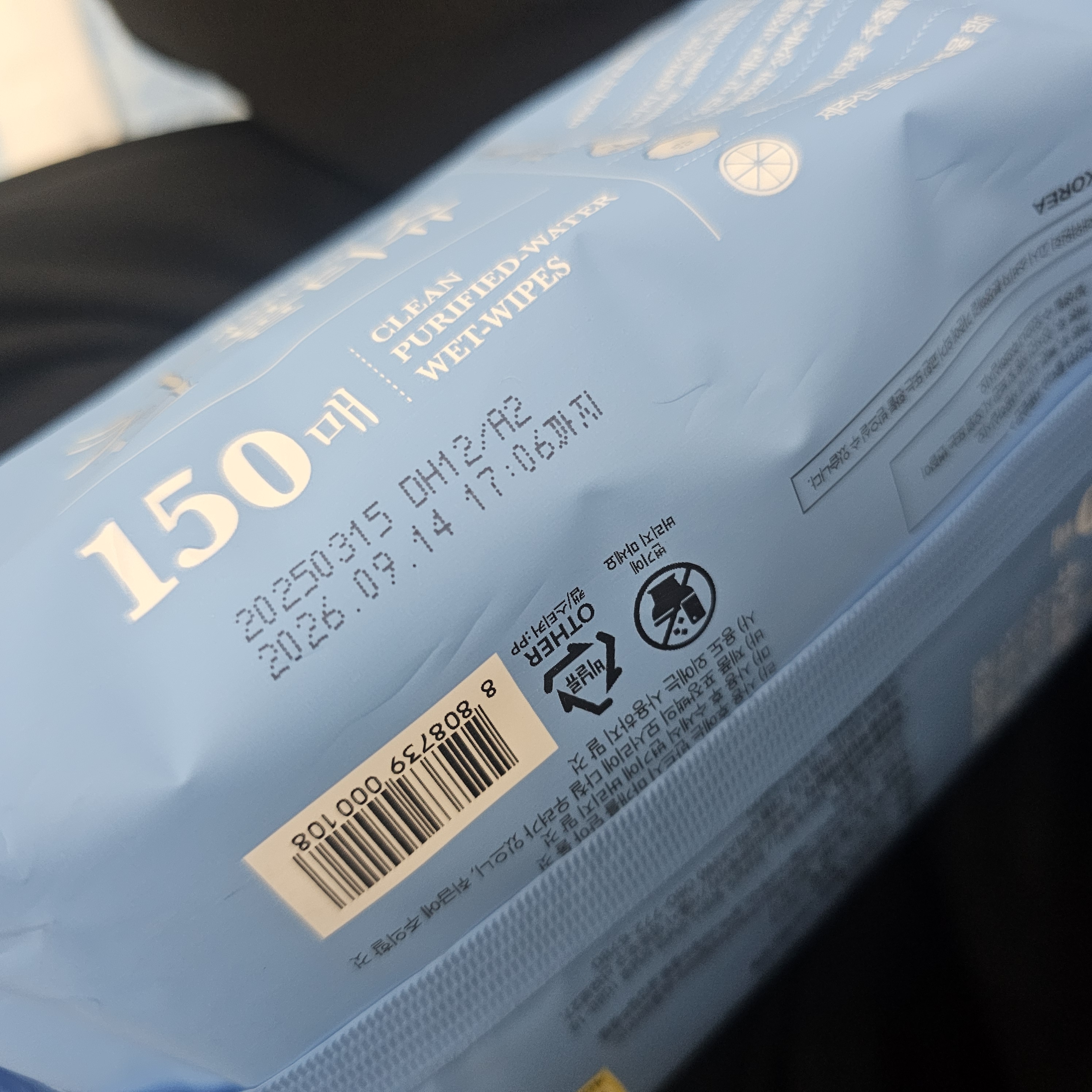제품 무게는 약 344g이고, 용량은 150매. 일반적인 물티슈보다 훨씬 많이 들어 있어서 가성비 면에서는 따라올 제품이 잘 없더라고요.