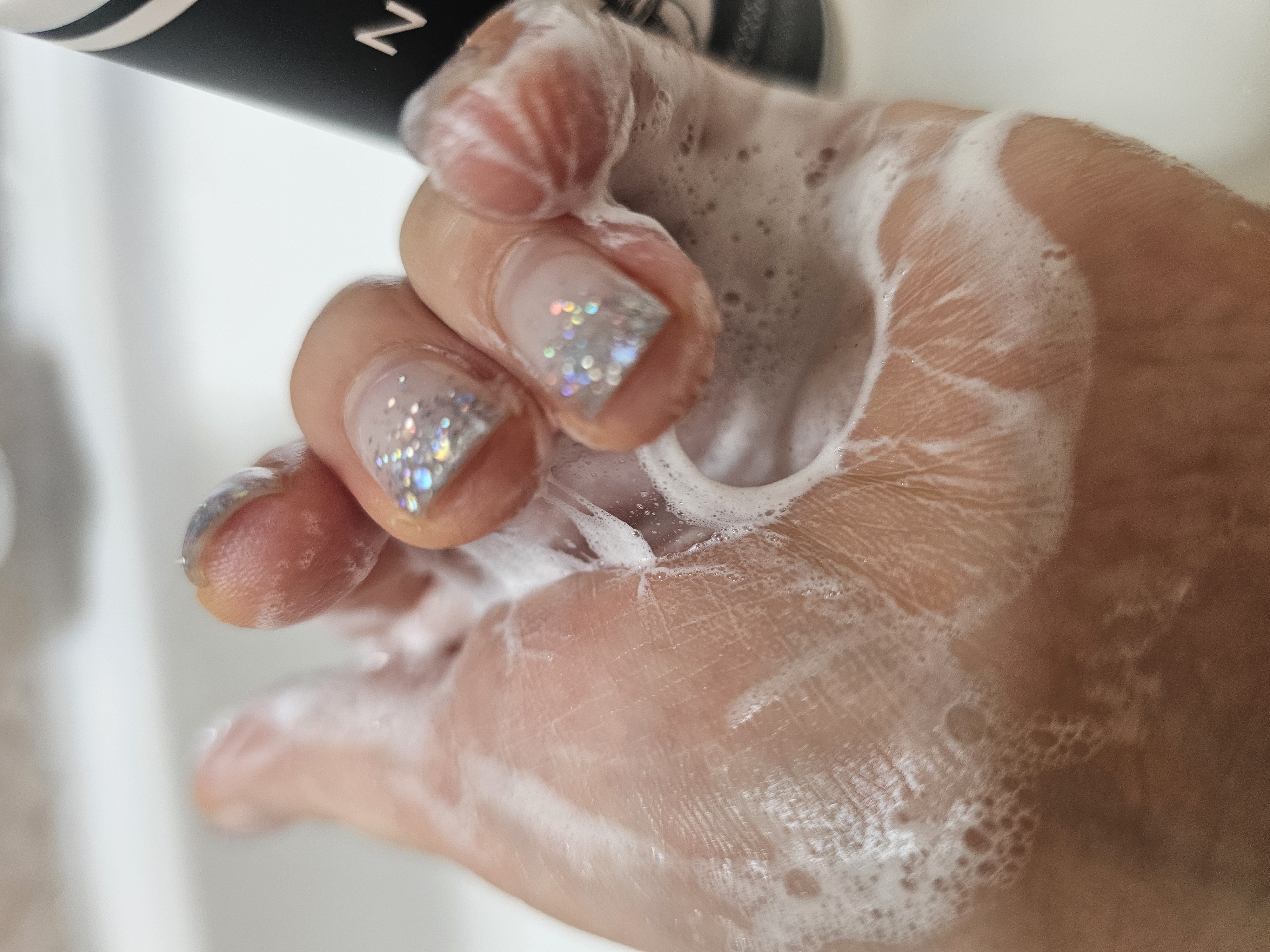 사용 방법도 간단합니다. 손바닥에 동전 크기만큼의 가루를 덜어 물을 살짝 묻혀 거품을 내고 얼굴에 부드럽게 마사지하듯 문질러 줍니다. 거품이 아주 조밀하고 부드럽게 나와서 피부에 자극이 거의 없어요. 저는 T존과 같이 피지 분비가 많은 부위는 조금 더 신경 써서 마사지하고, 볼과 같은 건조한 부위는 살살 문질러줍니다. 제품 설명에 따르면 1분 정도 팩처럼 두고 미온수로 마무리 세안을 하는 것이 포인트라고 해요.