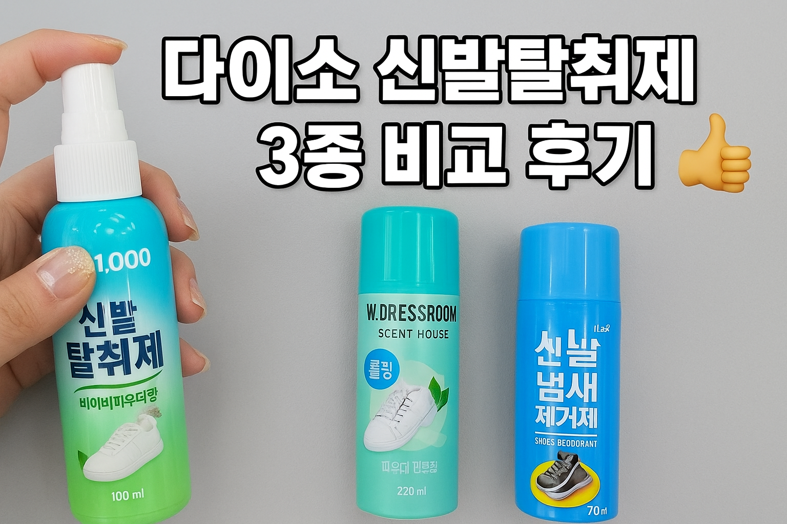 ✅ 한 줄 요약 : 다이소 신발탈취제는 상황별로 고르면 정답! 상쾌함은 민트향, 휴대성은 파우더향, 즉각 탈취는 블루 제품이 최고였습니다.