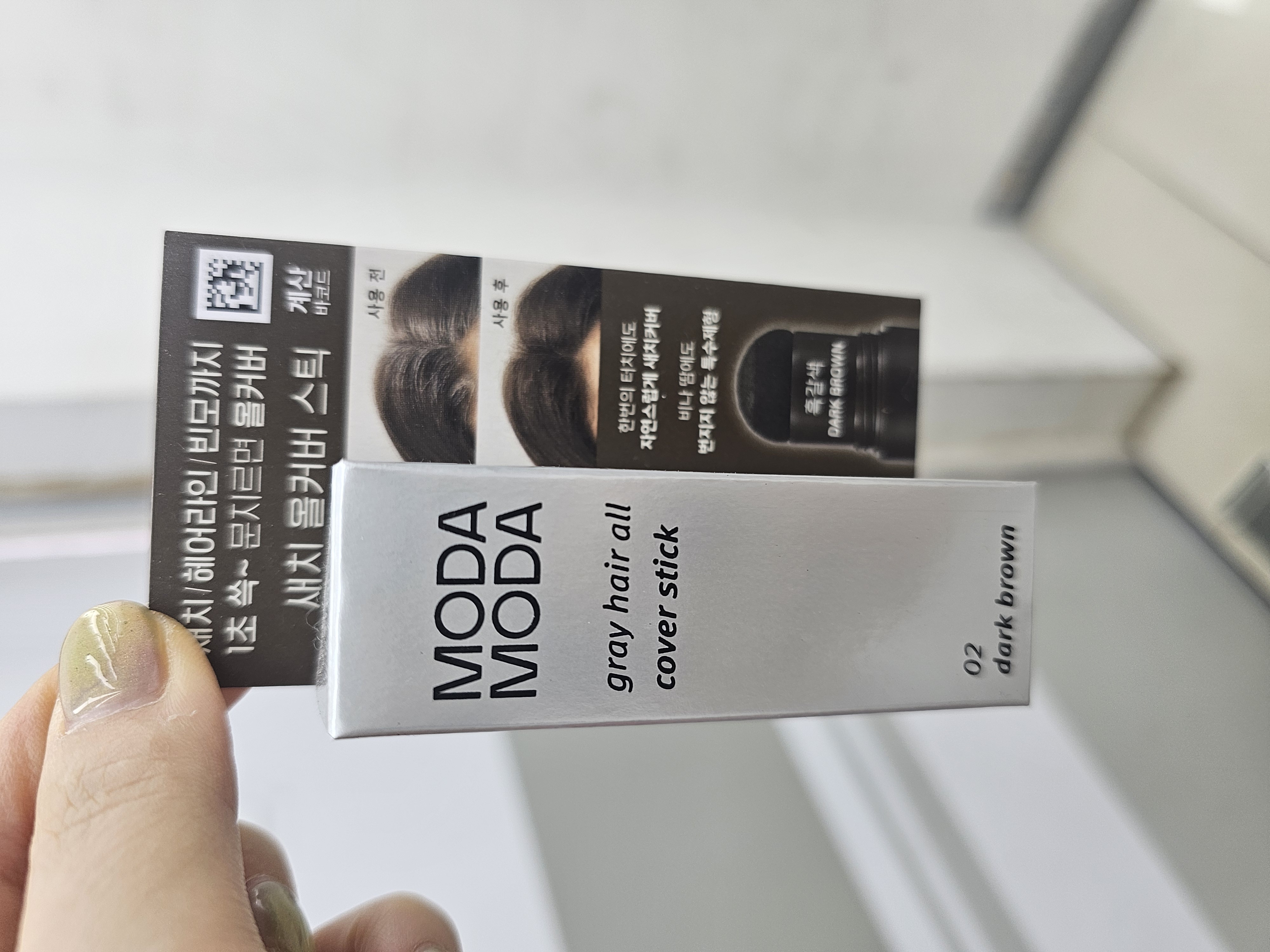 가장 먼저 사용해본 건 모다모다 gray hair all cover stick입니다. 스틱형 제품이라 립밤처럼 돌려서 바로 바르는 타입이에요.