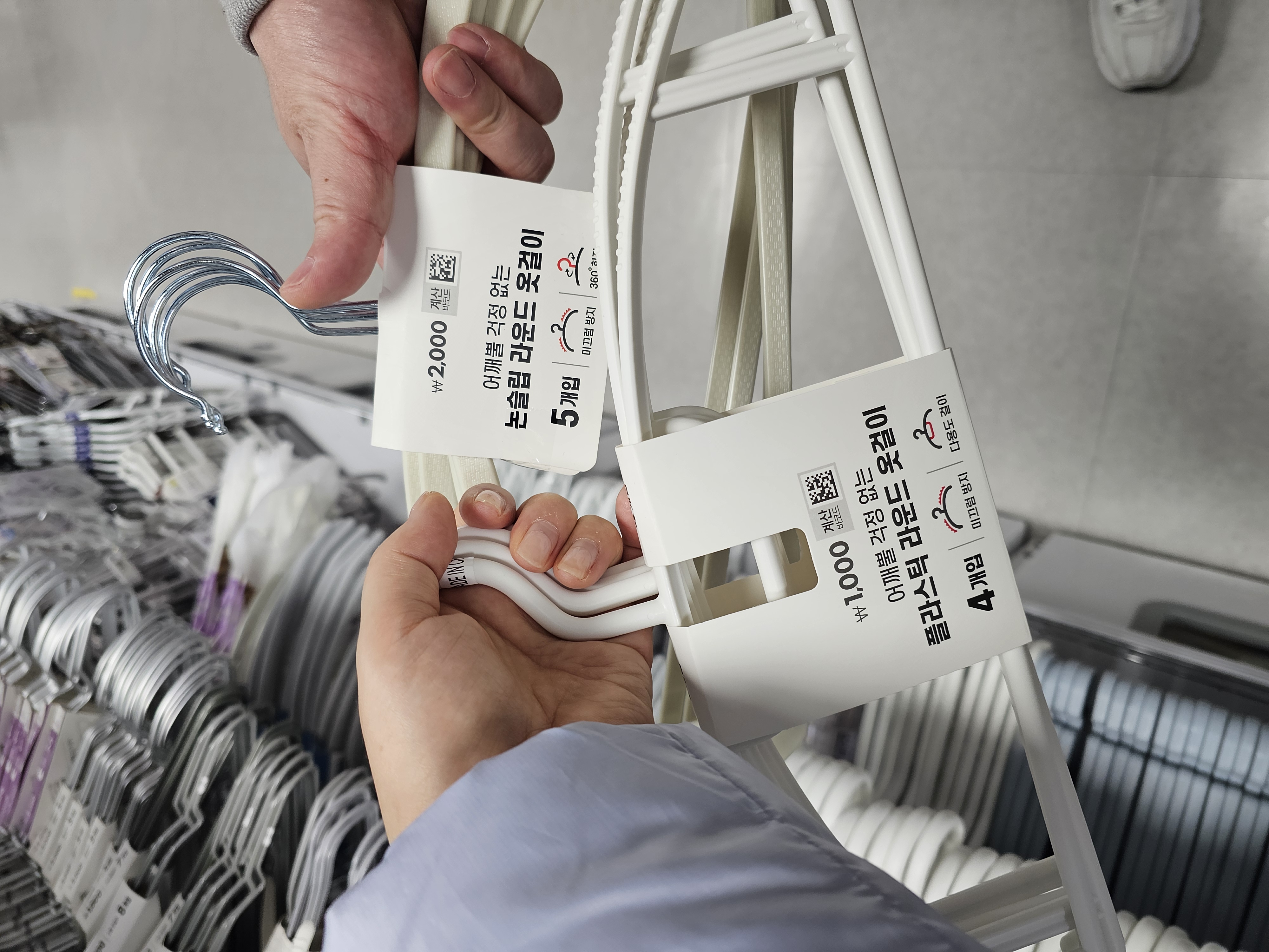 옷 정리하다 보면 은근히 신경 쓰이는 게 바로 옷걸이 잖아요? 어깨자국 남는거보면 신경쓰이고 쿠팡이랑 다이소 찾아보다 다이소 리뷰가 좋은거 같더라구요.