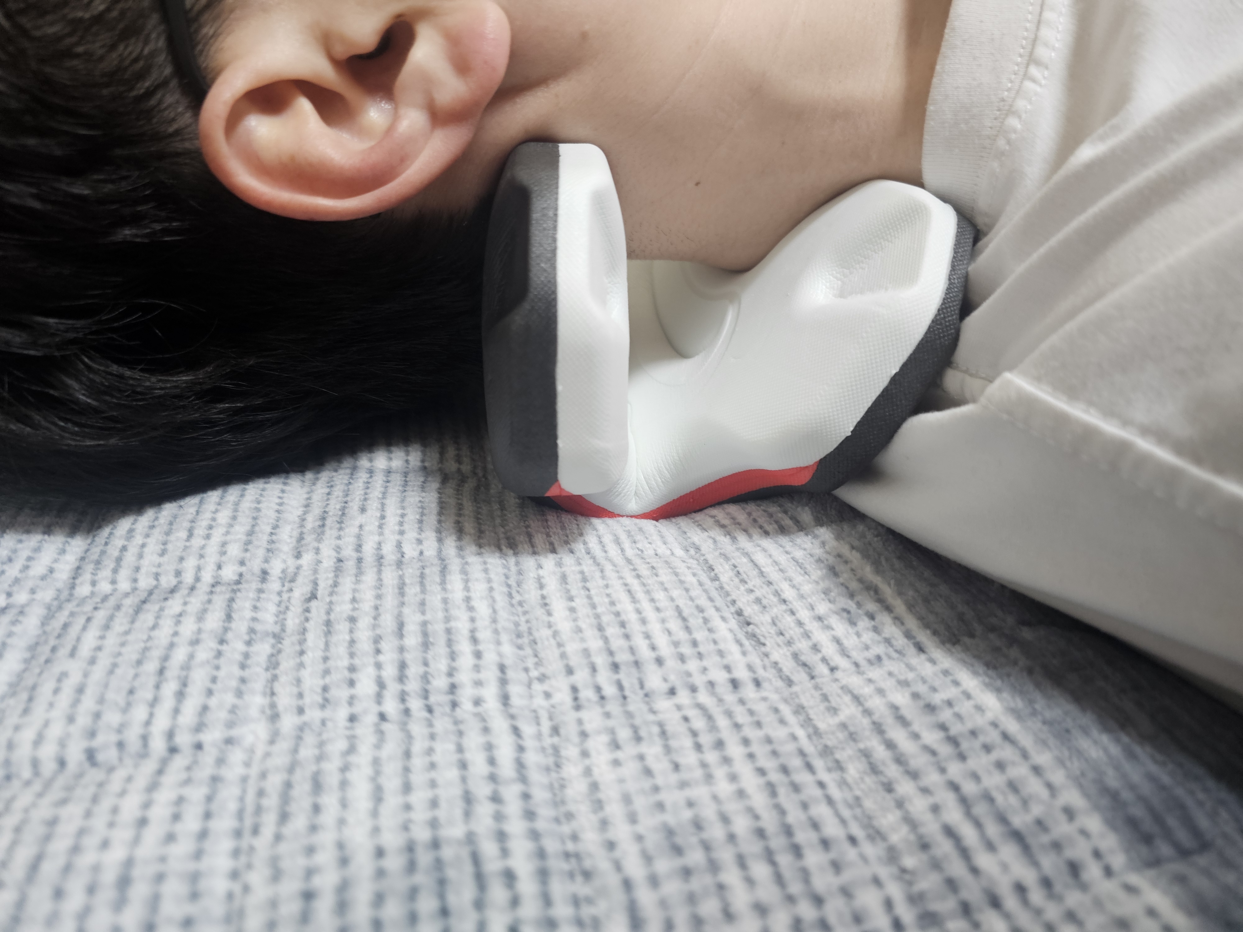검정색이 바깥부분으로 접히게 만들어서 먼저 사용해보세요. 그런 다음 접은 제품을 목 뒤쪽에 위치시키고 바닥에 편하게 누워주면 됩니다.