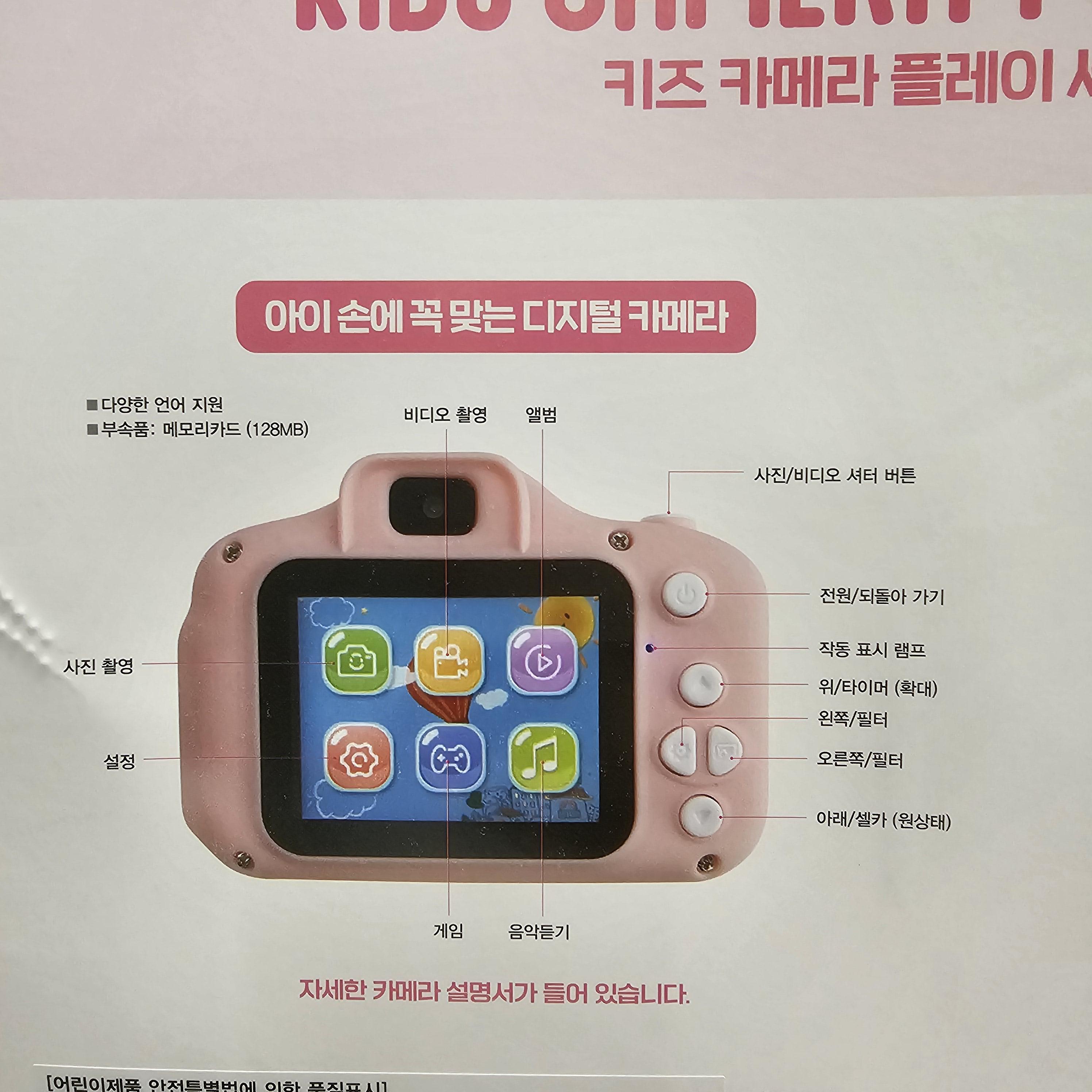 코스트코 키즈 카메라 기능에 대해 알아보겠습니다 1200만 화소의 렌즈가 내장되어 있습니다 동영상 촬영이 가능합니다 부속품으로 메모리카드 128mb가 제공되어 있으며 필요할 경우 최대 32GB 메모리까지 사용가능한 카메라입니다 그리고 5가지의 퍼즐게임이 내장되어 있습니다 셀카촬영도 가능한 키즈카메라입니다 타이머 기능과 음악 듣기 기능도 있습니다 스티커사진 사진필터 프레임의 종류가 여러 가지가 있어 선택 후 사진 찍기도 가능해 아이들이 좋아합니다 프레임도 귀여운 디자인이 많아 고르면서 셀카찍는 걸 아이들이 좋아하더라고요 타이머기능으로 사진찍기가 가능하니 키즈카메라 이지만 왠만한 카메라와 비슷한 기능을 다 갖춘 카메라 입니다
